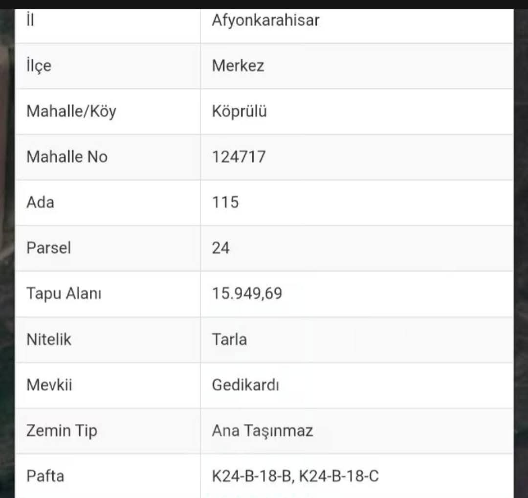 ✅️Afyonkarahisar Merkez Köprülü Köyünde bulunan arazimiz 15.949 m2’dir.